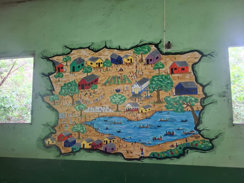 Igreja de São José em 9 de janeiro de 2026, antes das demolições. Nas paredes, a arte que narrava a história de um território marcado por conflito socioambiental e pela mobilização de seus moradores por reparação integral. Fotos: Arquivo JnT